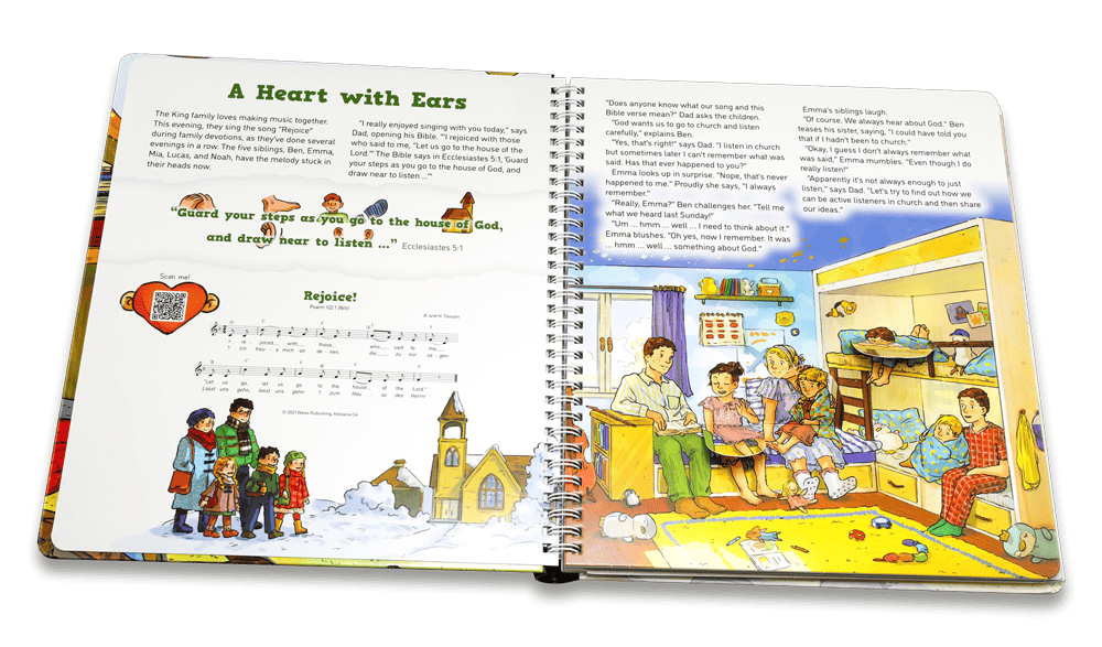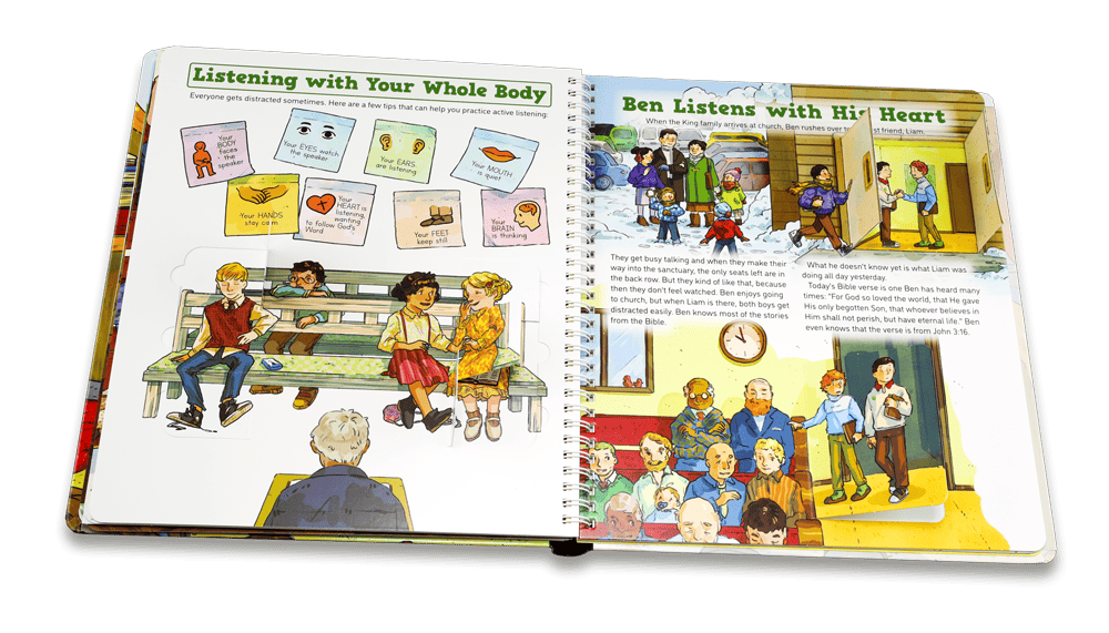 The King children know that active listening is not always easy. During family devotions, the five siblings, Ben, Emma, Mia, Lucas, and Noah, learn that it is important not only to listen with your ears but with your heart, especially when it comes to God’s Word. Their father tells them the Parable of the Sower, and together the family learns how to become active listeners and stay focused. When Ben tries to listen carefully, he makes an important discovery.