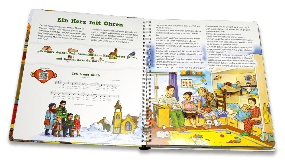 Zuhören ist nicht immer leicht! Das wissen auch die Kinder der Familie König. Bei der Familienandacht lernen die Geschwister Ben, Emma, Mia, Lukas und Noah, wie wichtig es ist, nicht nur mit den Ohren, sondern auch mit dem Herzen gut zuzuhören, besonders wenn es um Gottes Wort geht. Ihr Vater erzählt das Gleichnis vom Sämann, und gemeinsam versucht die Familie herauszufinden, wie man ein guter Zuhörer wird und was einem helfen kann, sich nicht ablenken zu lassen. Hauptsächlich Ben macht eine ganz besondere Entdeckung, als er mit den Herzensohren zuhört.