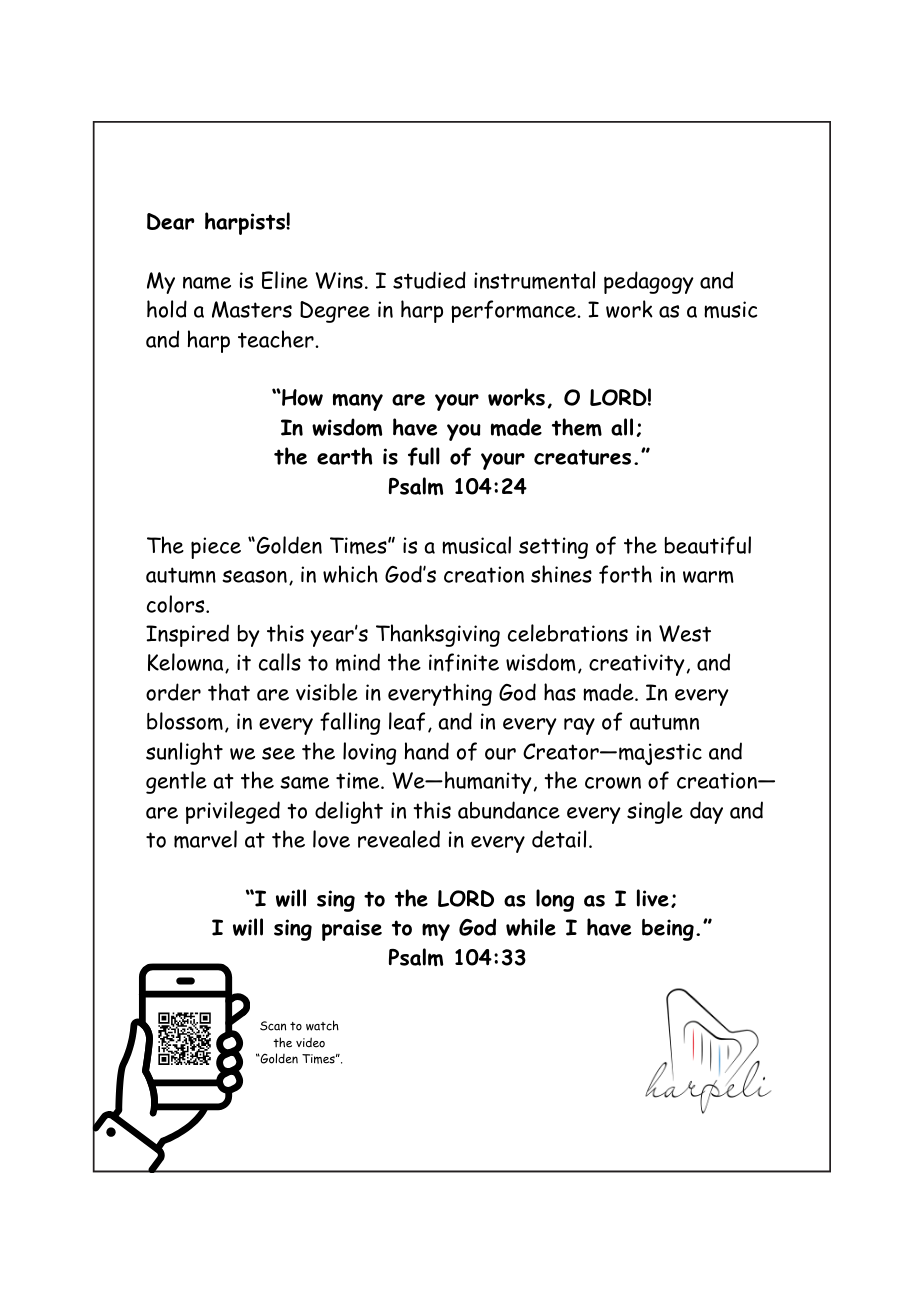 The piece “Golden Times” is a musical setting of the beautiful autumn season, in which God’s creation shines forth in warm colors.